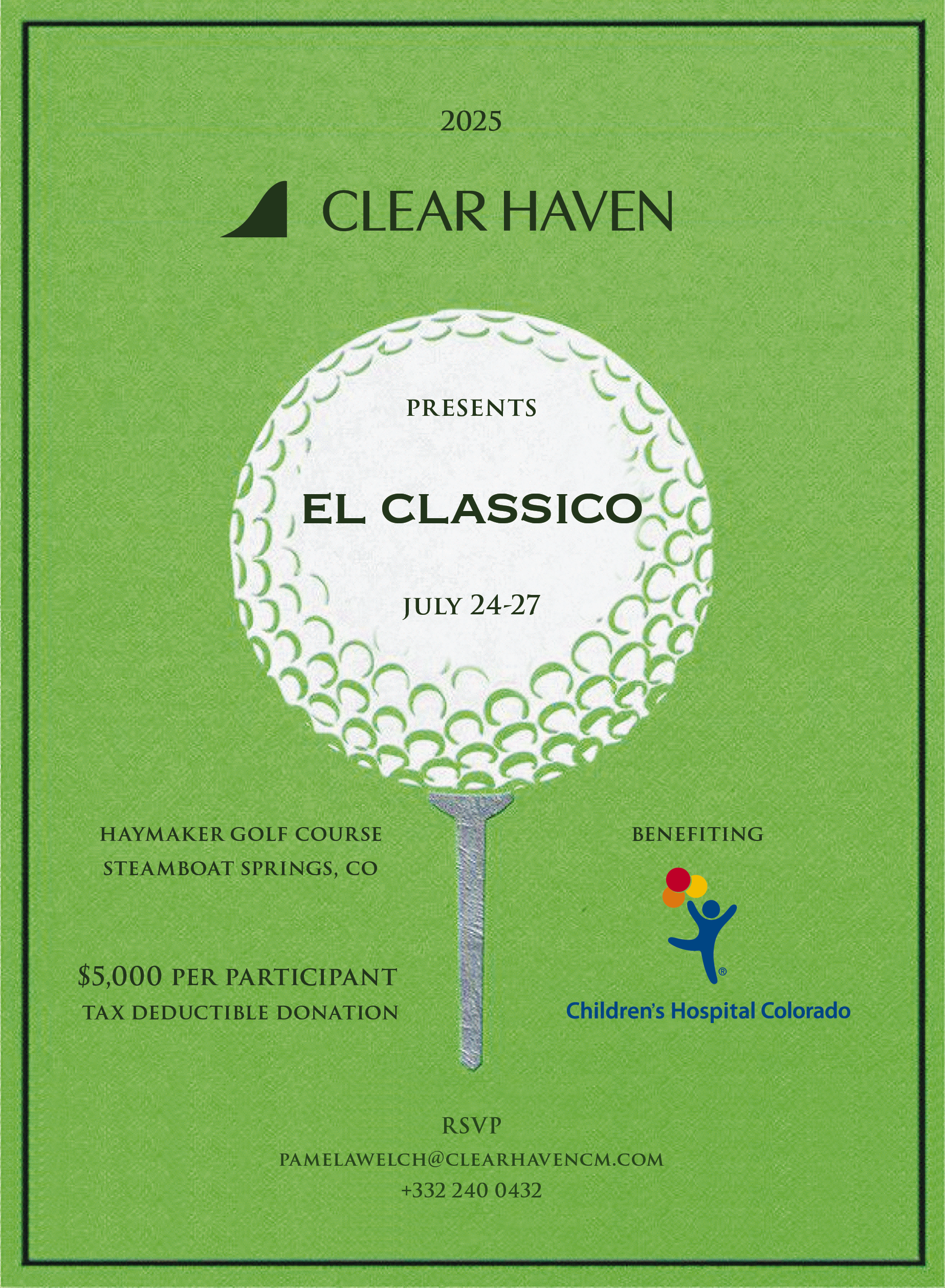 Join Clear Haven Capital Management in the breathtaking setting of Steamboat Springs for our signature annual event. This unforgettable weekend brings business partners, clients, and friends together to celebrate community, connection, and compassion, all in support of a remarkable cause: Children’s Hospital Colorado.